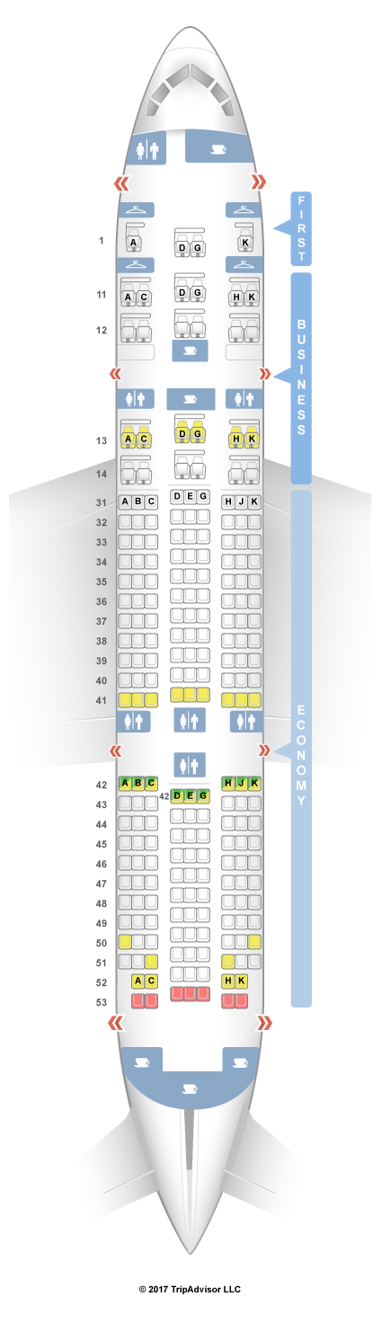 This Boeing 787-8 has 228 seats in a 3-class configuration. There are 4 seats in First Class, 24 seats in Business Class, and 200 seats in Economy Class.
