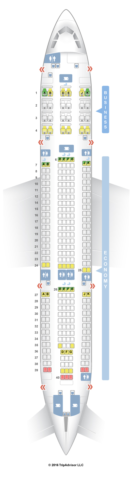 This Airbus A330-200 has 273 seats in a 2-class configuration. There are 12 seats in Business Class and 249 seats in Economy Class.