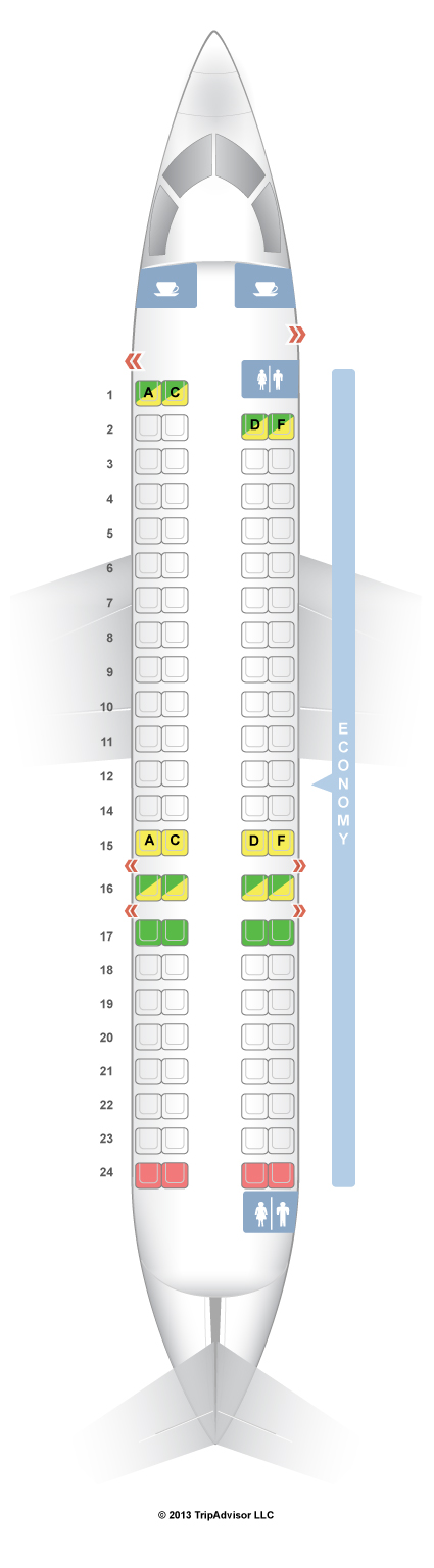 The CRJ-900 is operated by Air Nostrum and can seat 90 passengers in Economy Class. Nearly all of the rows are misaligned with the windows on this aircraft.